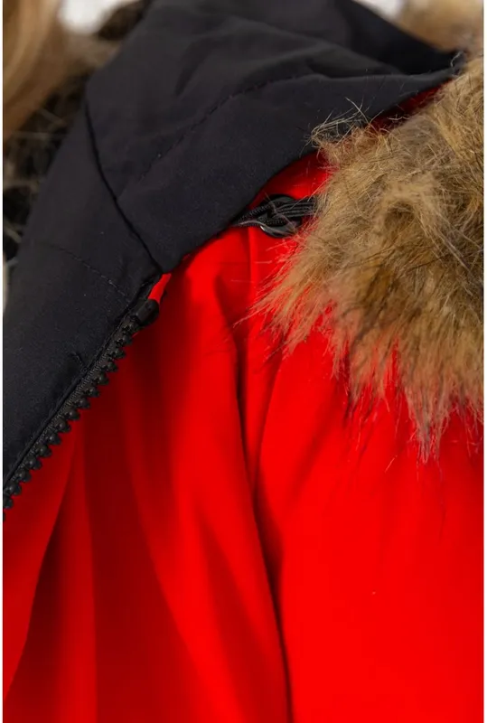 Теплая куртка, средней длины. Цвет черно-красный.Двухсторонняя; С капюшоном (не отстегивается)Состав верх: 100% полиэстерподкладка: 100% полиэстернаполнитель: 100% синтепон; Хутро штучне