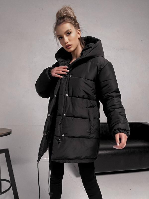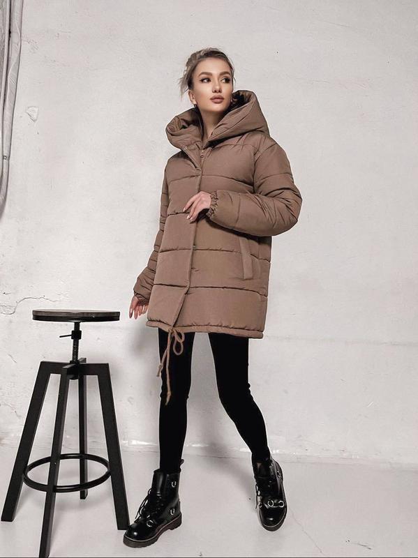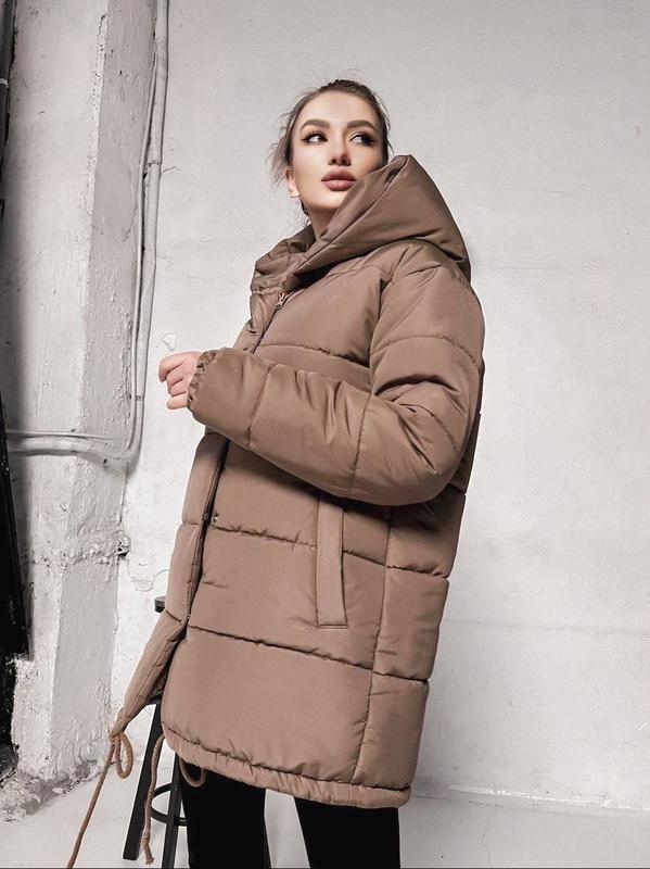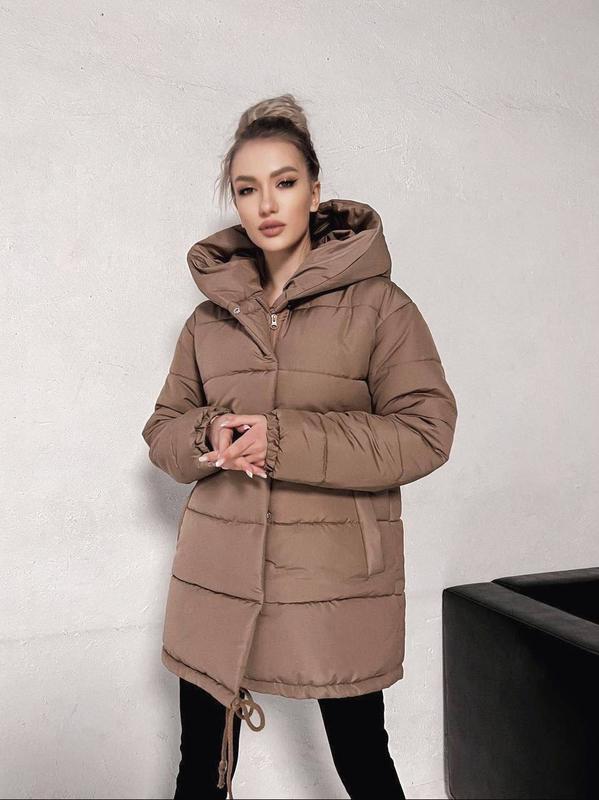 Теплый зимний пуховик зефирка на молнии кнопках куртка удлиненная плащевка на силиконе...