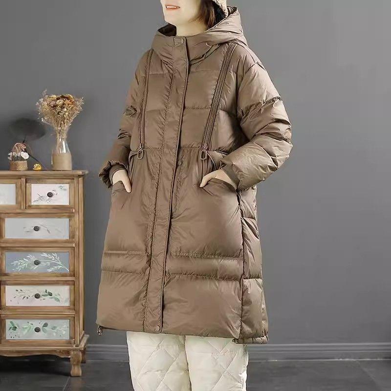 оверсайз. Пуховик женский с капюшоном из влаго- и водоотталкивающей ткани на