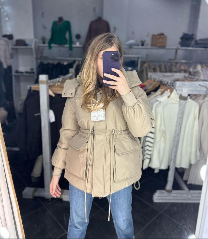Куртка розмір 42 на с-м. Наповнювач холофайбер. Демісезон, можна до -10. Заміри вказані на фото. Дуже класна та якісна тканина. колір темний беж, трішки до хакі. Стан нової, носила минулого сезону лиш пару разів
