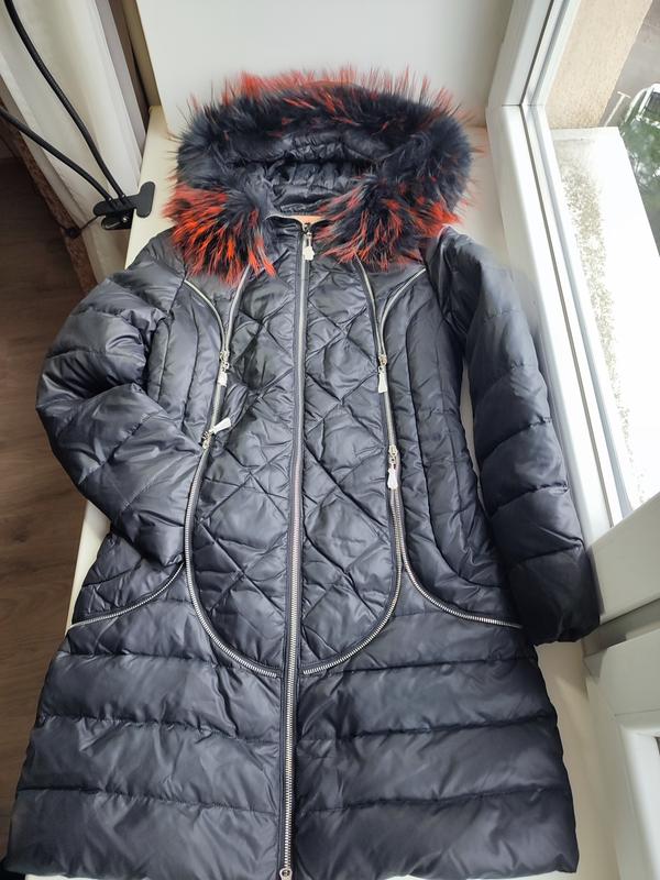 теплый зимний пуховик длина 87ОГ 47ОТ 42ОС 55плечи 39рукав 64капишон не снимается мех енота съемное Новый