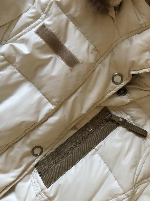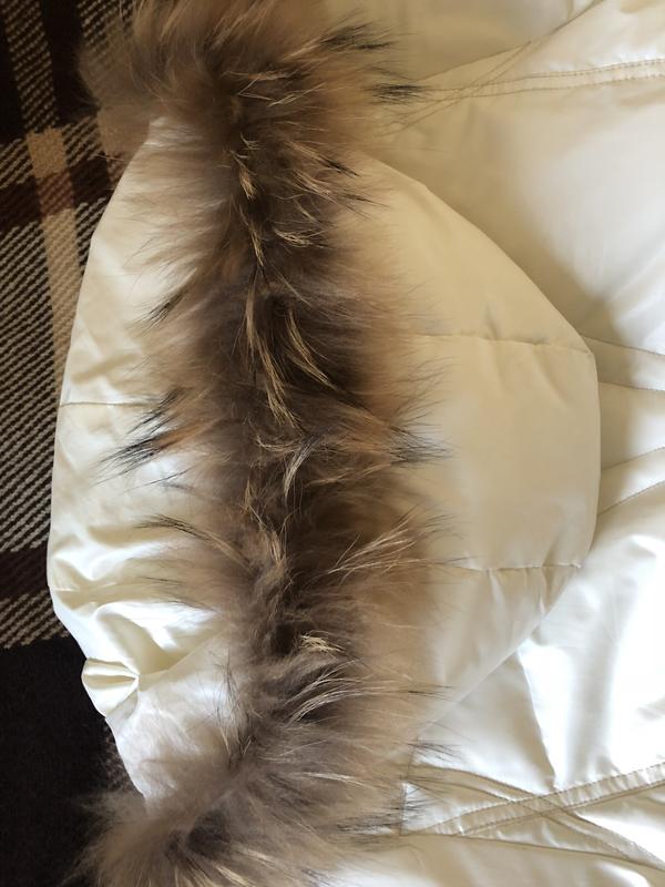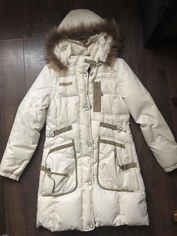 Очень тёплый пуховик, цвет слоновая кость, стильная фурнитура, натуральный мех на капюшоне, регулируется на талии, плотная ткань верха, наполнение 70% на 30% пух /перо, покупался в фирменном магазине, размер указан L, но реально M, идеально на рост 170, особенно длина рукава, замеры по требованию