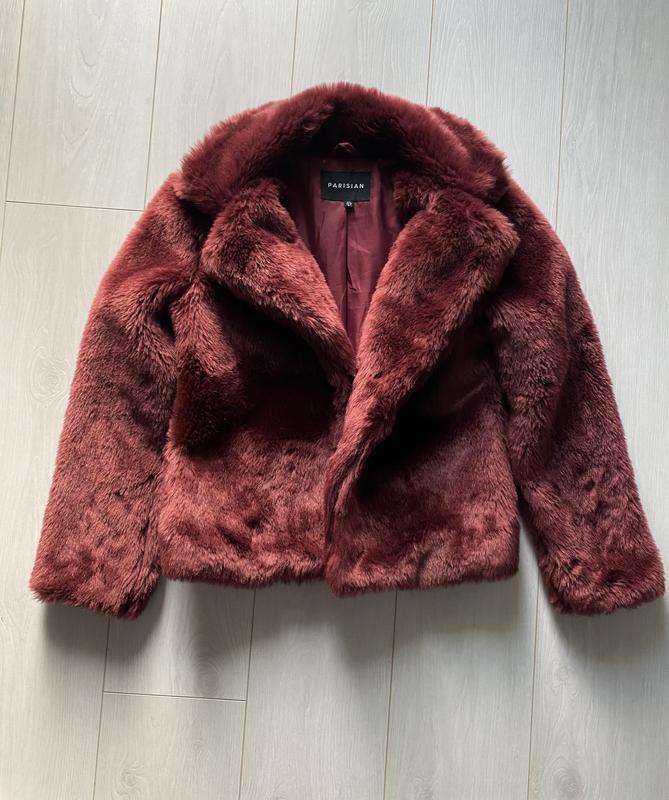 Мякочка шубка из эко меха в бордовом цвете, размер по бирке S