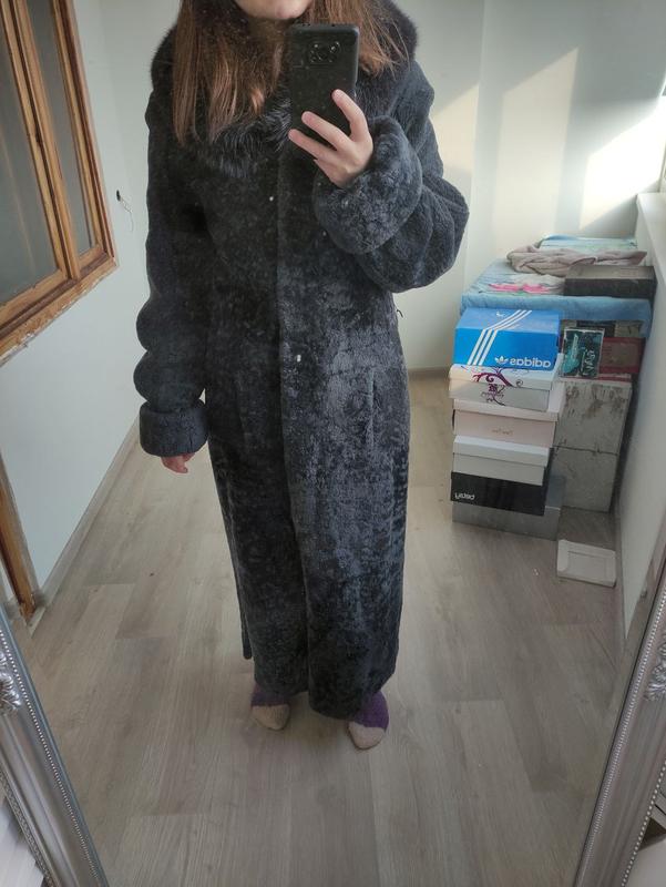 Шикарная шуба мутон из натурального меха длины макси с воротником из натурального песца. Мутон наиболее ценная овчина особой выработки, которая отличается повышенным блеском волосяного покрова, хорошей проглаженностью, прочесанностью, шелковистостью. Смотрится невероятно красиво и при этом очень стильно и современно, красивый темно-серый цвет. Застегивается по всей длине, качественная подкладка внутри, карманы, очень теплая. Состояние новой вещи - надевалась несколько раз в ресторан. Размер идет на С-М, на рост от 170 (на фото на мне на 163) Отправляю после оплаты на карту или самовывоз в Киеве
