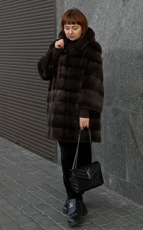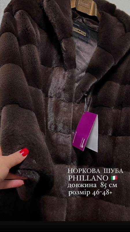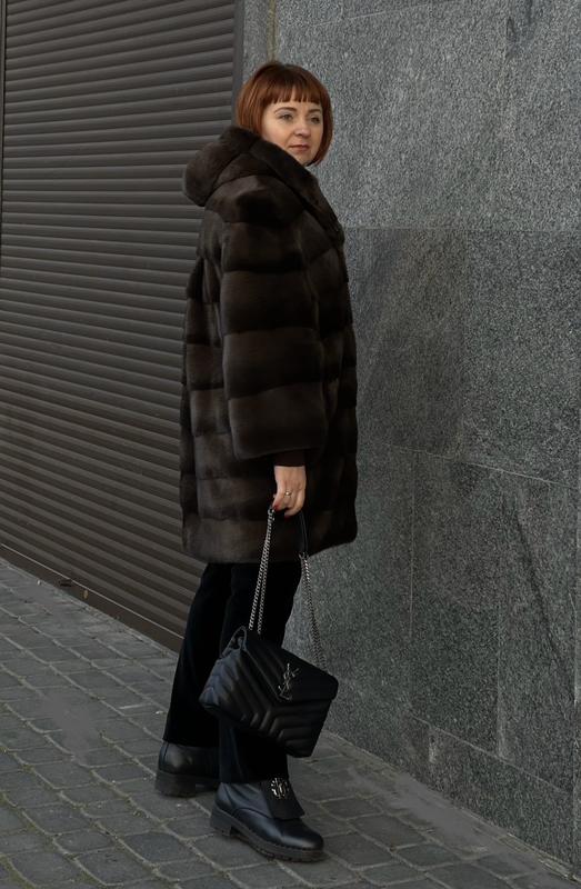 Норкова шуба PHILLANO Італія Поперечка з капюшоном мадонна Колір шоколад- графіт Крій кокон Рукав браслетний