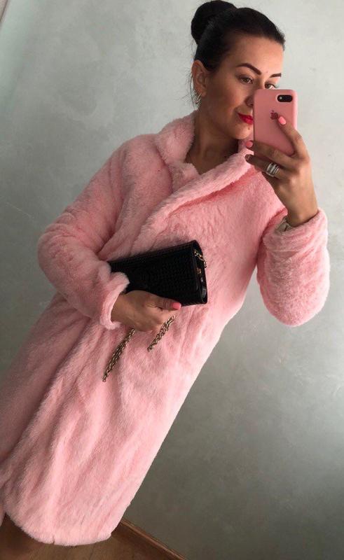 Шубка деми длинна миди нежно розовая шубка халат из эко меха нежная и пушистая мягенький плюш обрати