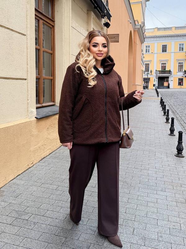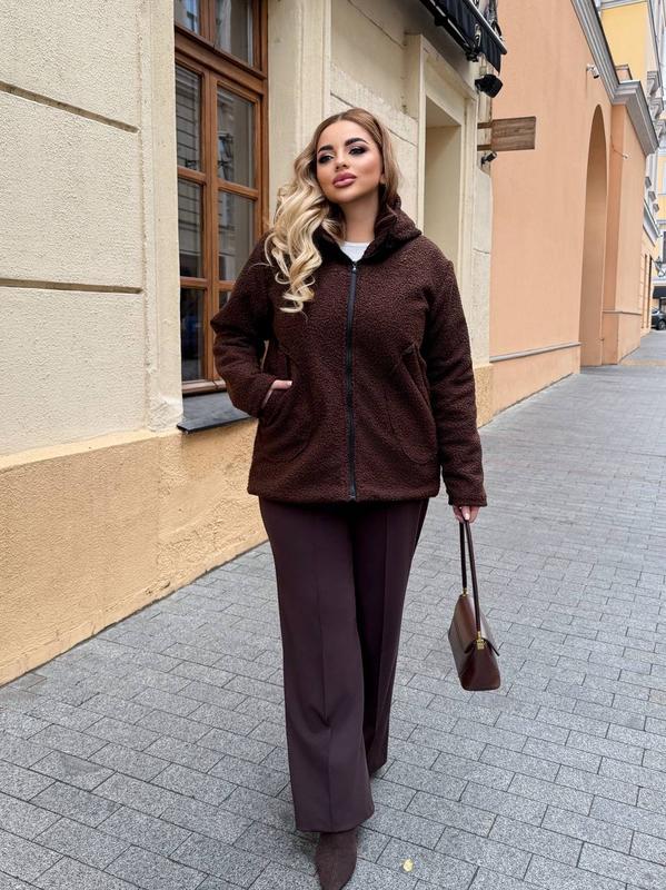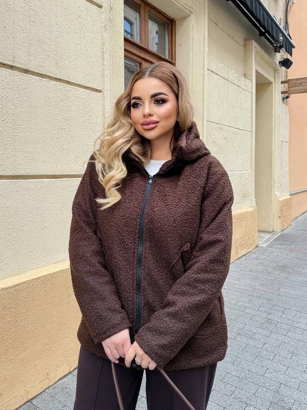Зимняя полушубок Q417Ткань: барашик +подклад теплый пайка 80 силиконЦвет: молочный и шоколад Размер: 48-50; 52-54; 56-58; 60-62Капюшон не снимается