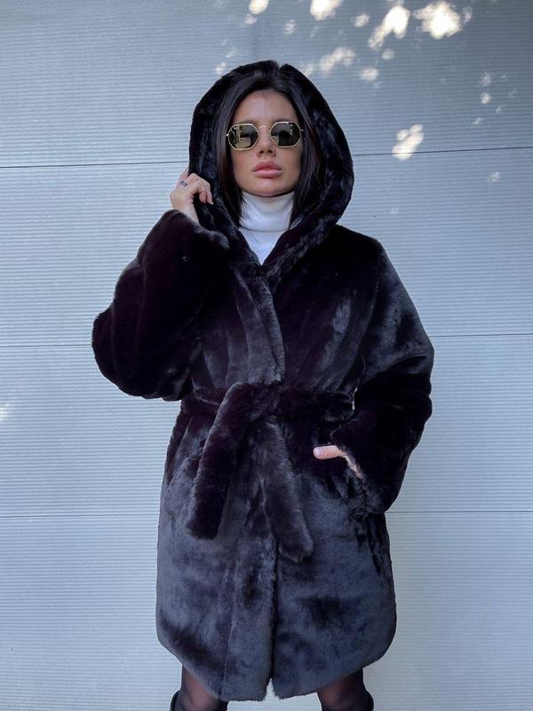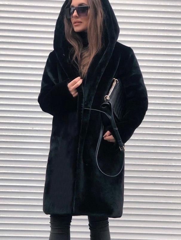 Мягкая и супер теплая (до -20) шубка из эко меха с капюшоном и поясом 💫