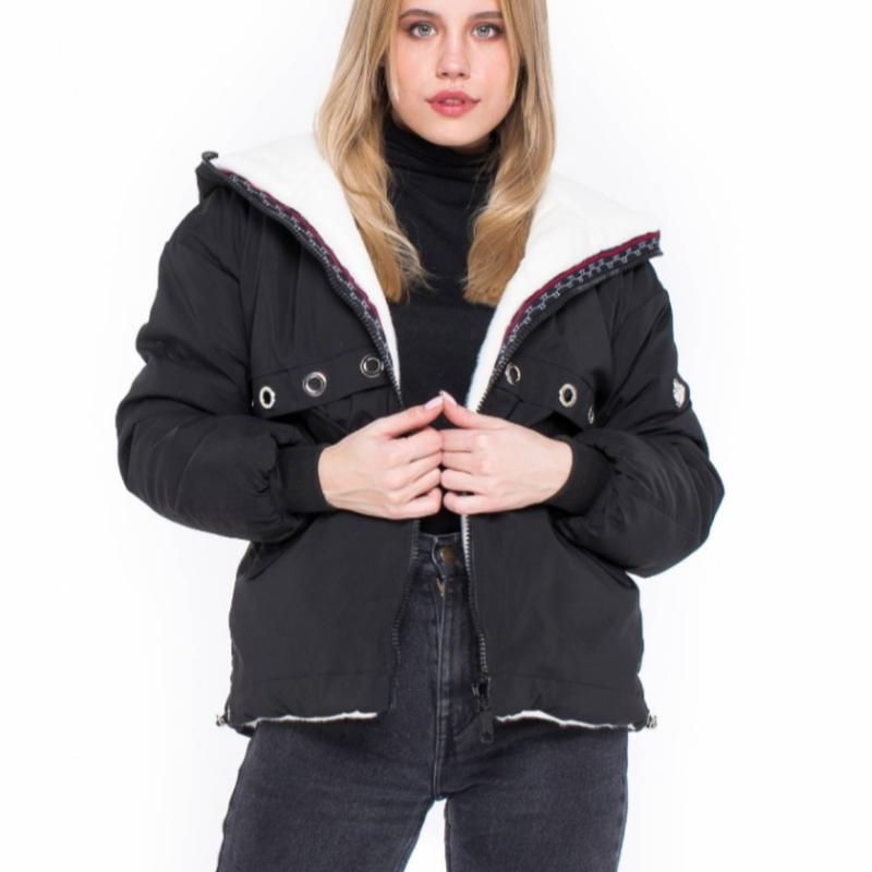 Выпустили не просто шубку, а двустороннюю куртку-шубку из эко меха premium класса. По Вашему выбору Вы можете носить яркую шубку или стильный бомбер на меху. Две модные вещи в одной.