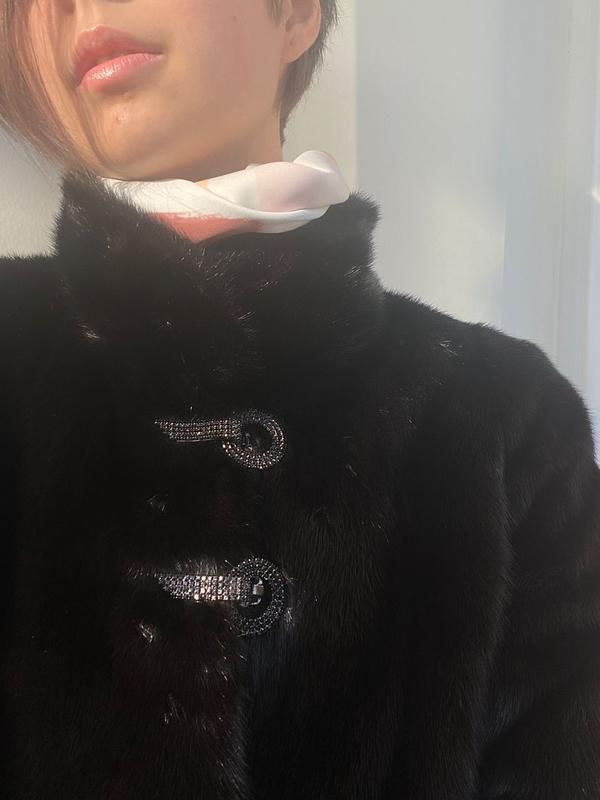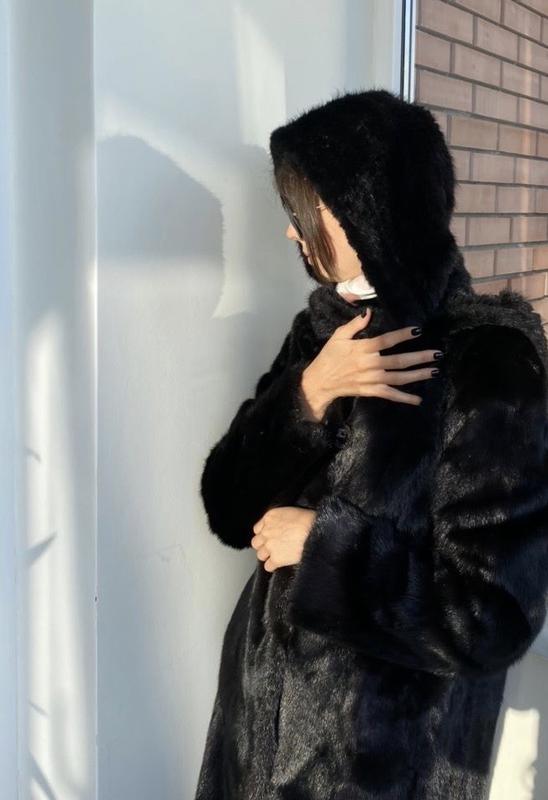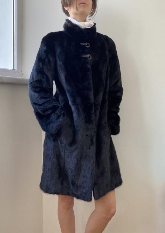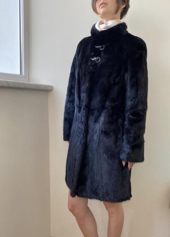 Новая шуба из цельной норки34 размер 90 см в длину {от плеча} с изящной фурнитурой возле воротника-стойкив оригинальном чехлеКиев