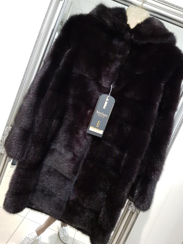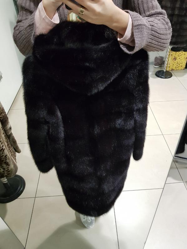 Шуба норкова з капюшоном довжина 75 об'єм 105 см поперечка . колір темно -шоколад