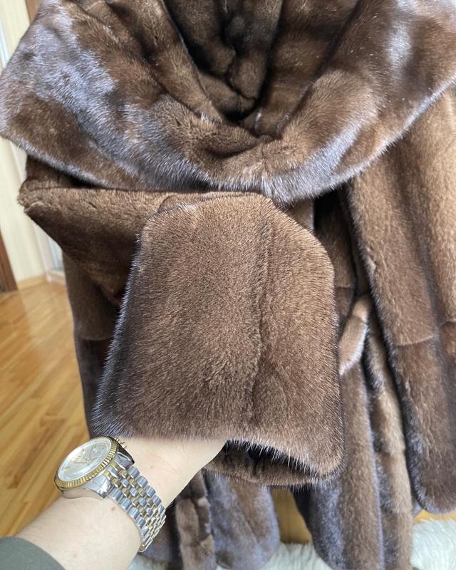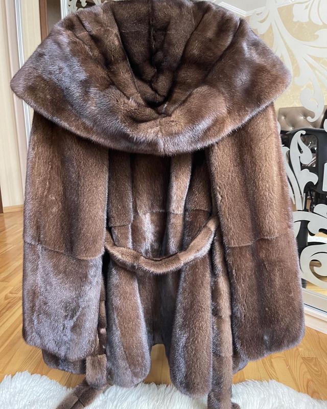 Красивая норковая шубка, цвет соболь/орех, не крашеная, мех густой и очень мягкий, красиво блестит, уютный капюшон.