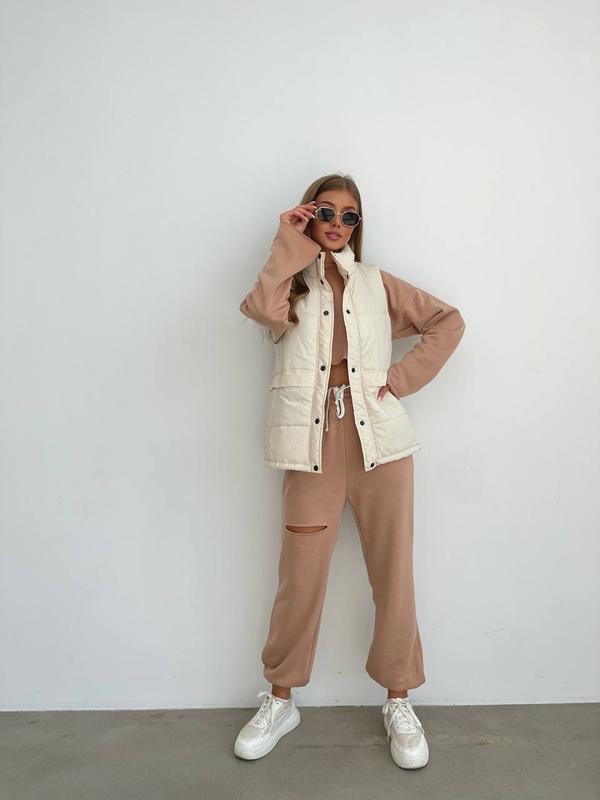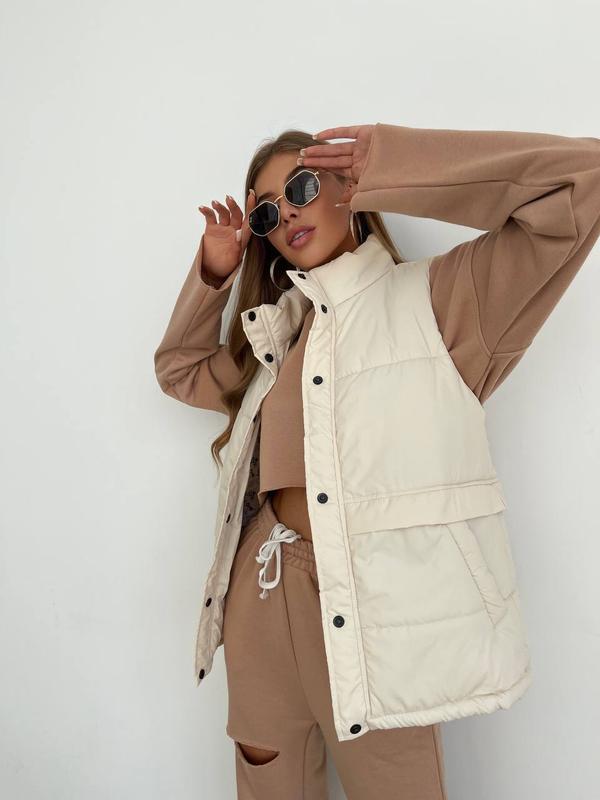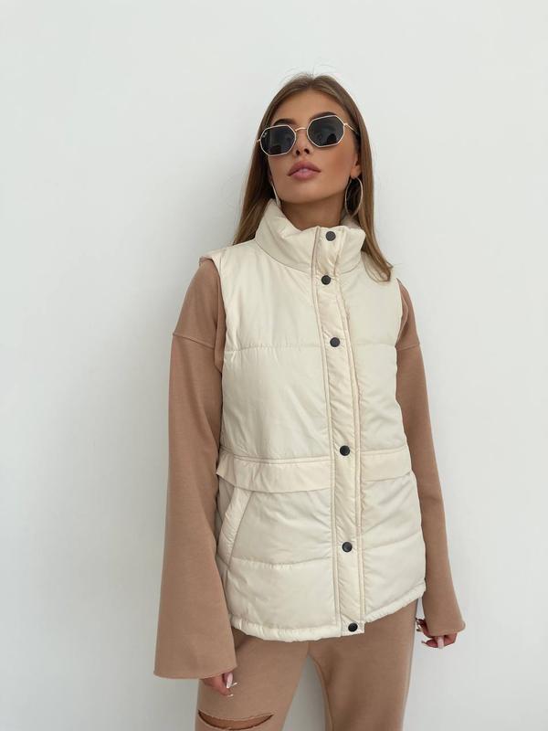 Жилетка на кнопках с двумя рабочими карманами, плотная плащевка с силиконовым наполнителем (не сбивается при стирке)