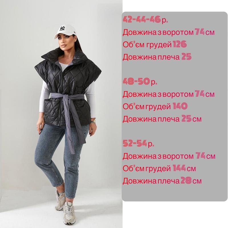 Женский жилетМод 6549/4Тканина: наповнювач 200 халофайбер, верх-100% нейлонМолния трактор, стойка, два карманаЦвет: черныйРазмеры: 42-44-46, 48-50, 52-54
