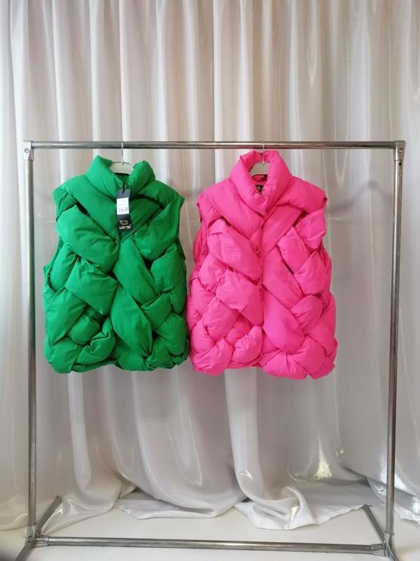 стильна дута жилетка 3D палітурка в наявності яскраво-зелена і рожева фуксія розміри 42 44 46 виміри неточні припускаю похибку вимірах плюс-мінус 2 см тому що за рахунок того що річ дуже об'ємна виміри зробити практично неможливо точно /// розмір 42 напівобхват грудей 55 см була під стегон 57 см довжина 63 см Розмір 44 напівобхват грудей 58 см по стегон 60 см довжина 65 см розмір 46 напівобхват грудей 61 см напівобхват стегон 63 см довжина 67 см нагадую допускаю похибку вимірах плюс-мінус 2 см виміри зроблені по верху виробустильная дутая жилетка 3D переплёт в наличии ярко-зелёная и розовая фуксия размеры 42 44 46 замеры неточные допускаю погрешность замерах плюс-минус 2 см так как за счёт того что вещь очень объёмная замеры сделать практически нереально точно /// размер 42 полуобхват груди 55 см была под бёдер 57 см длина 63 см Размер 44 полуобхвату груди 58 см полок под бёдер 60 см длина 65 см размер 46 полуобхват груди 61 см полуобхват бёдер 63 см длина 67 см напоминаю допускаю погрешность замерах плюс-минус 2 см замеры сделаны по верху изделия