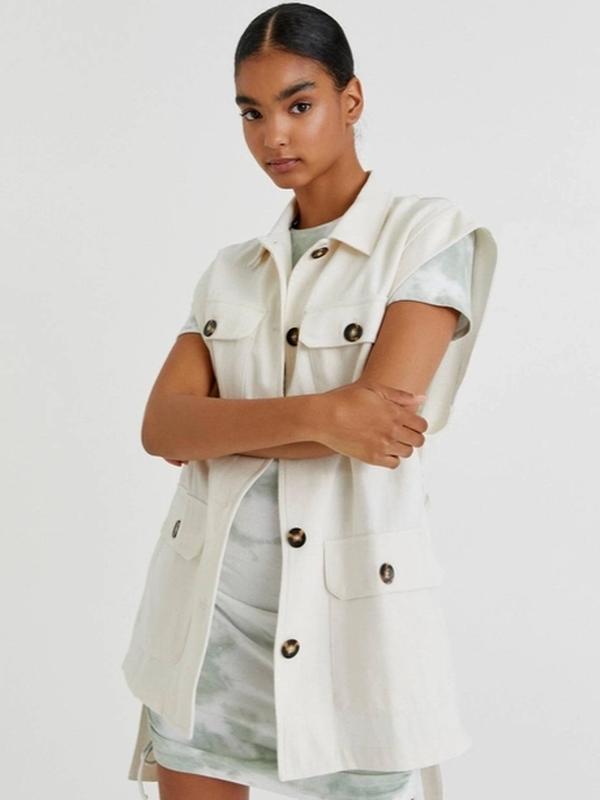 Удлиненный льняной жилет, жилетка, безрукавка с накладными карманами, карго стиль, лен