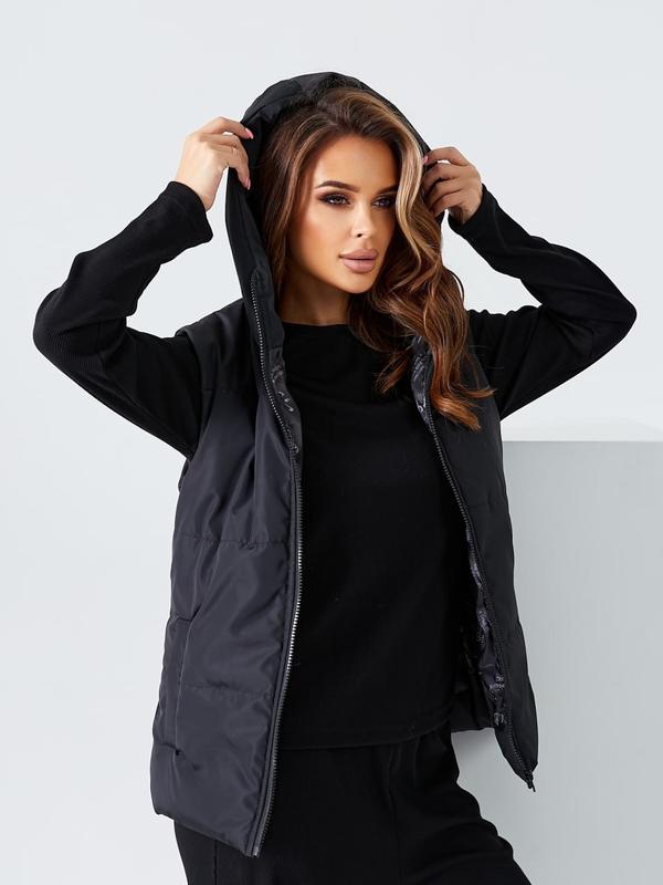 Очень комфортная и теплая осенняя жилетка. Материал amy - Водоотталкивающая, матовая, мягкая плащевка, обеспечивающая минимальное количество заломов и помято в период эксплуатации..