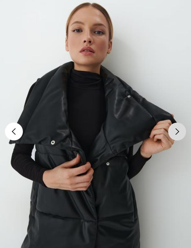 жилетка из качественной эко кожи ,мягкая эластичная ,смотрится дорого как натуральная кожа, на кнопках с карманами длина 100смпог 58смпоб 60см