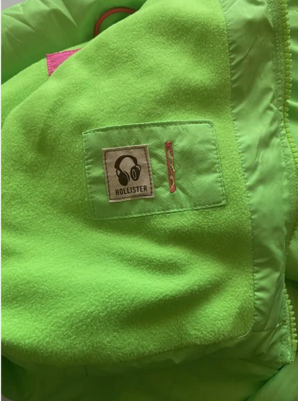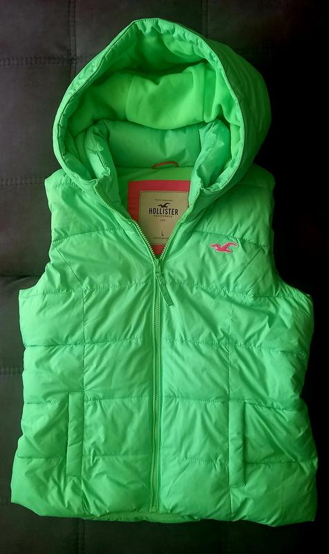 Великолепная яркая утепленная жилетка салатового цвета с капюшоном на флисовой подстежке Hollister