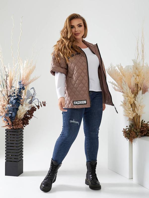 Жилетка Код: 604 vir Цена: 1060 грн. Цвета: черный, мокко, красный, мята, графит, джинс, молочный Тканина: плащівка Лаке + синтепон 150 Размеры: 48-50, 52-54, 56-58 Стильная стеганная жилетка с рукавом, удобный глубокий капюшон, карманы, качественная фурнитура. Замеры: 48-50: ОГ: 118 см, ОС: 120 см 52-54: ОГ: 126 см, ОС: 128 см 56-58: ОГ: 134 см, ОС: 136 см Длина: 70/71/72 см Длина рукава от горловины: 38/40/42 см