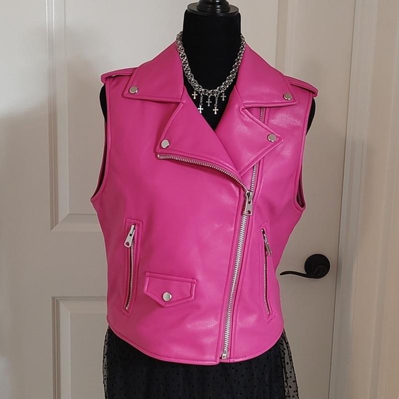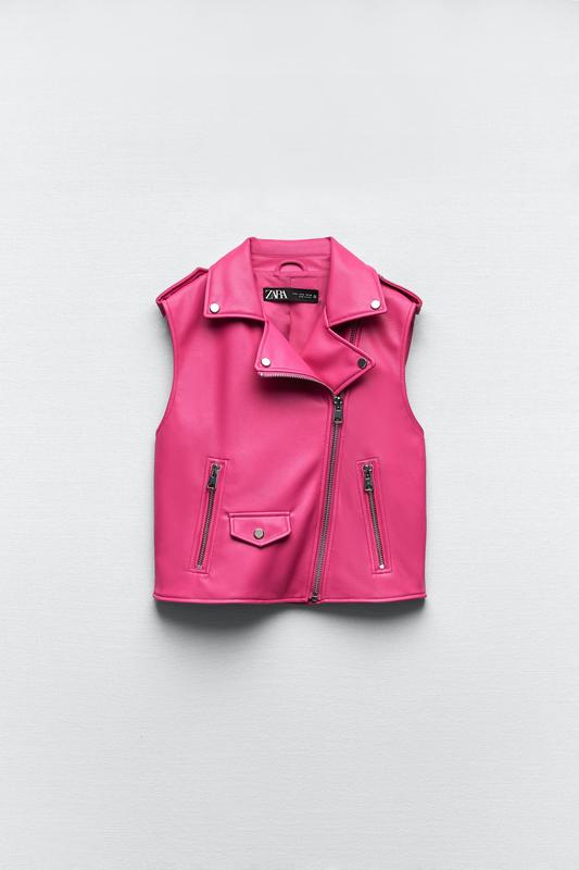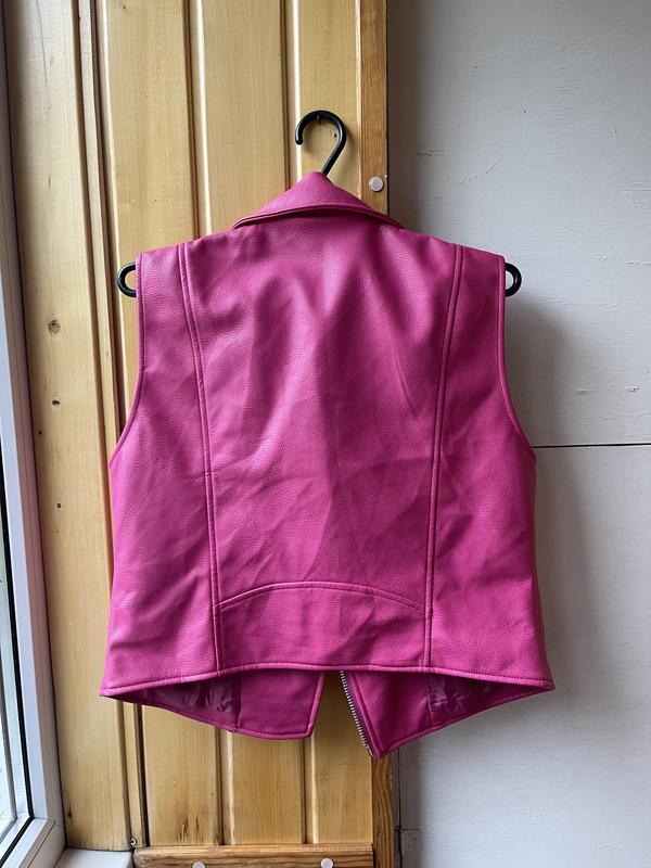 Жилетка косуха кожаная эко кожа на запах зара яркая малиновая розовая