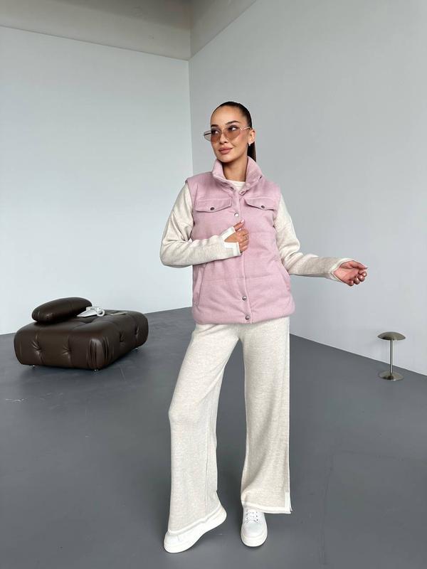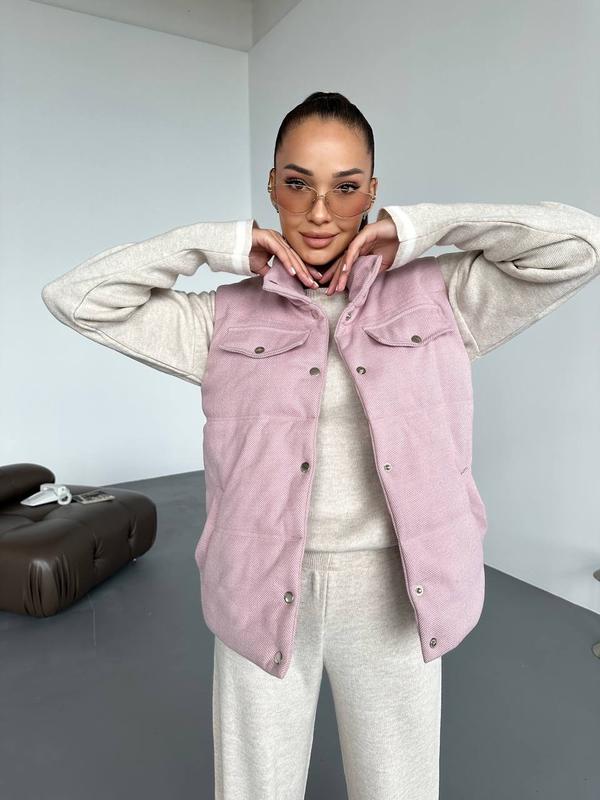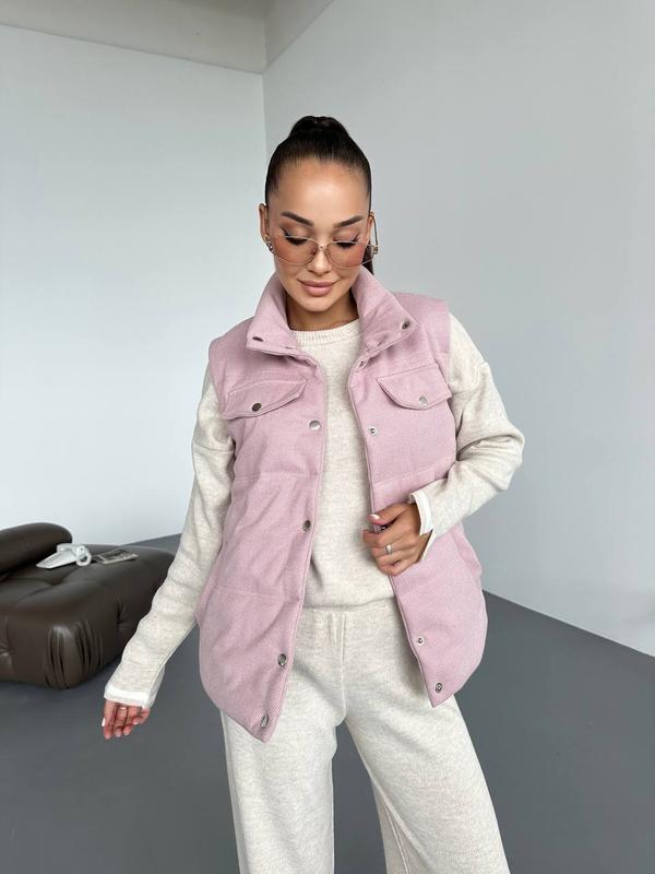 Жилет легкий и теплый при этом, на 150 силиконе, защелкивается на кнопки, выглядит очень стильно. Качественный пошив, с боковыми карманами.