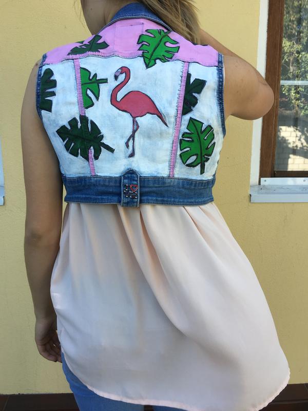 Джинсовая жилетка с рисунком фламинго Делалась под заказРазмер S-M
