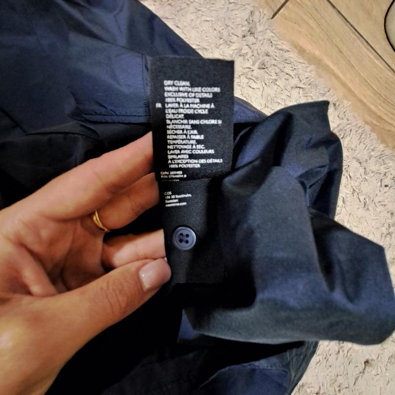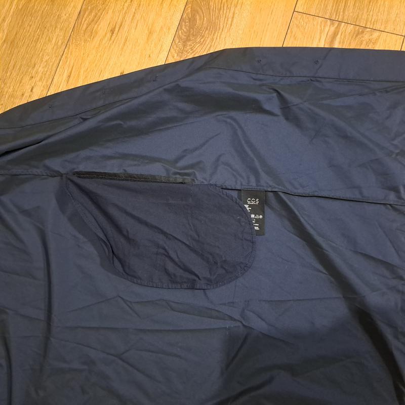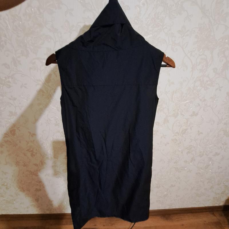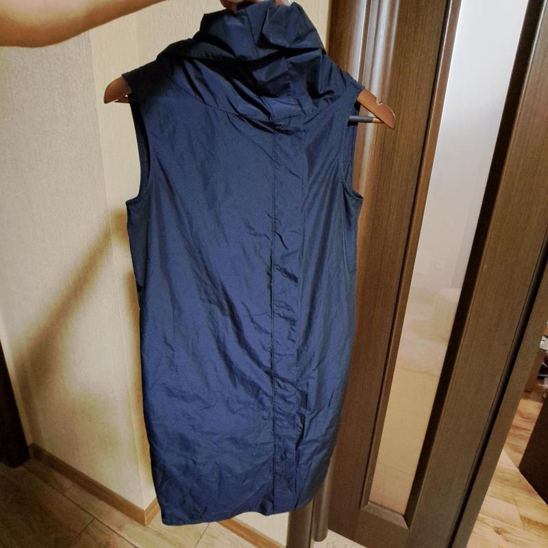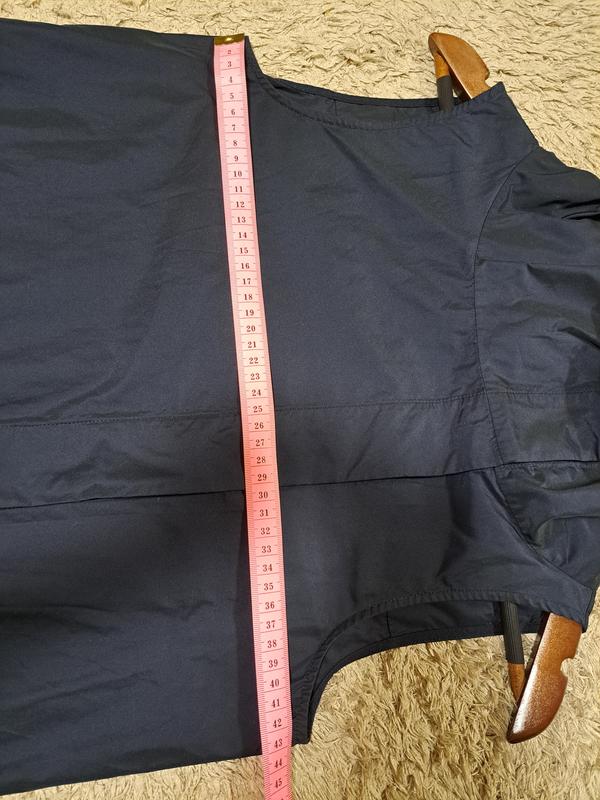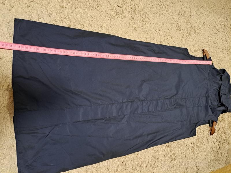 длина 87 см, длина воротника 22 см.подойдет на размер, S, M, L.есть карманы, дополнительный пуговица. Темно-синего цвета. плащевая ткань.