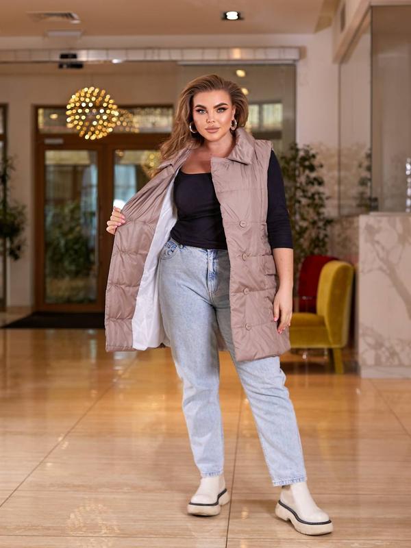 Жилет Ткань: плащевка Лаке на 150 синтепонеЦвет: черный, оливка, мягко, белыйРазмеры: 48-50; 52-54; 56-58; 60-62