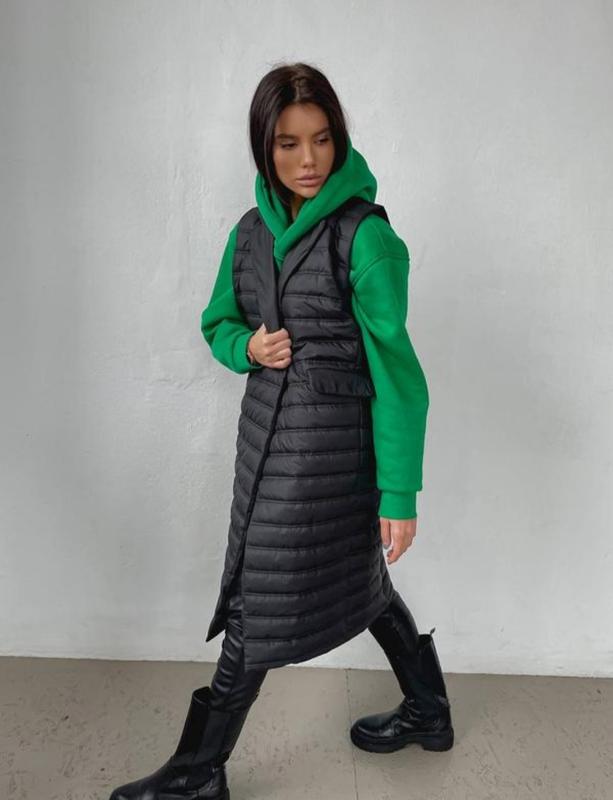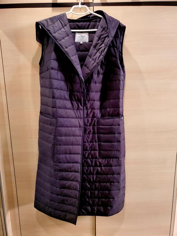 Длинный стеганный жилет с капюшевым, с карманными, iдеальный на прогулку, знаменитого украинского дизайнера Андре Тан, замир по запросу