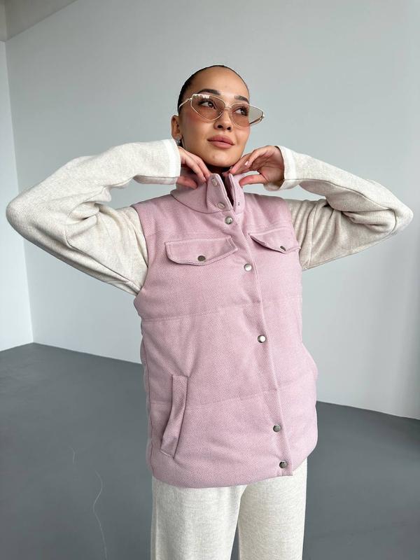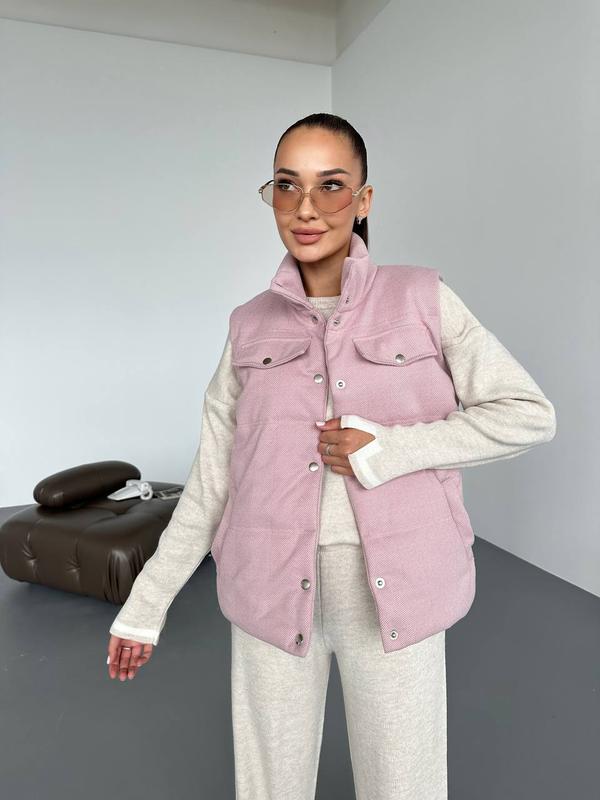 Жилет легкий і теплий водночас, на 150 силіконі , застібається на кнопки , виглядає дуже стильно . Якісний пошив , з бічними кишенями .