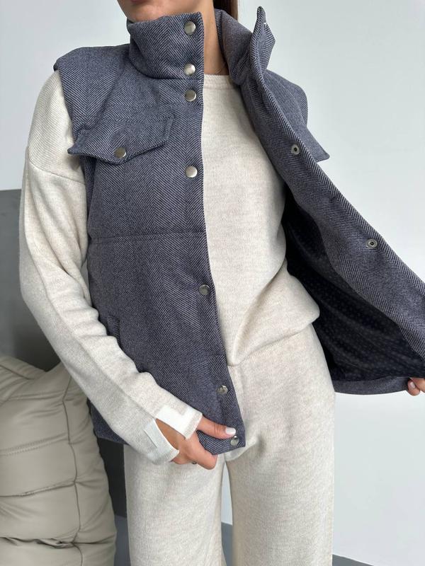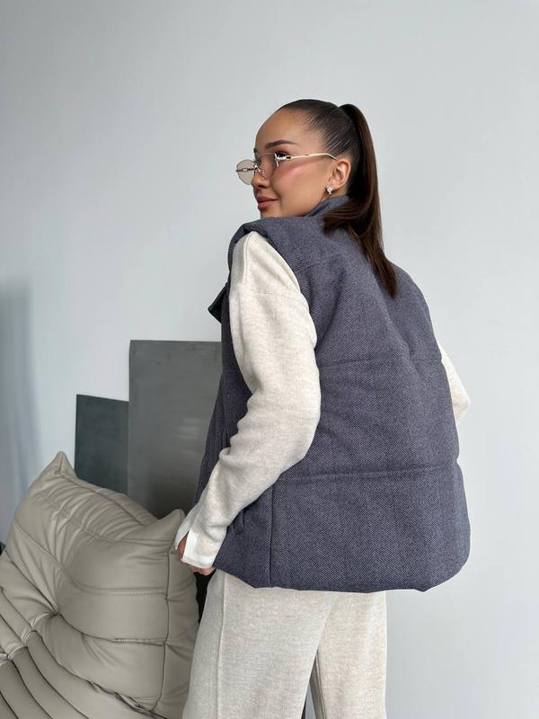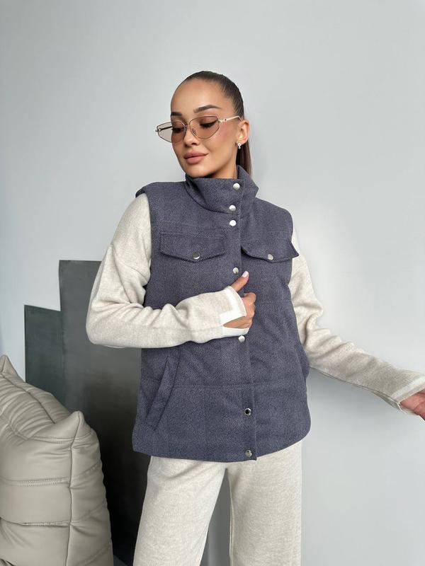 Жилет легкий і теплий водночас, на 150 силіконі , застібається на кнопки , виглядає дуже стильно . Якісний пошив , з бічними кишенями .