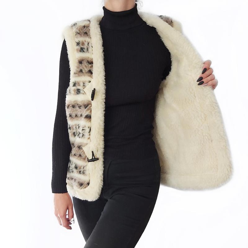 - Високоякісна овеча шерсть (Еко-шерсть) вплетена в тканинну основу, завдяки цій технології жилетка має властивості натурального хутра, але без нанесення шкоди живій природі.