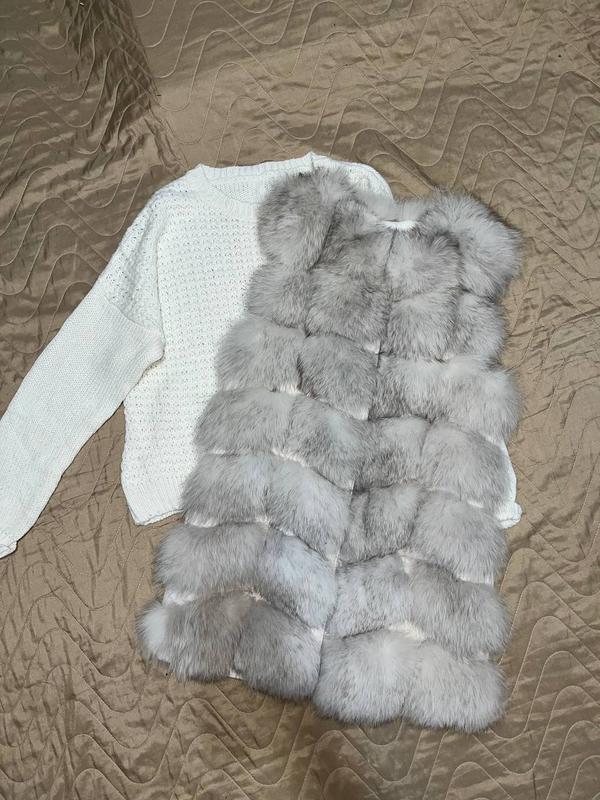 Продам безрукавка из меха песца. Размер S-М, длина от плеча 75 см, белый цвет с оттенком серого. Мех идеален, есть загрязнения на самом кашемире, которое можно почистить самому или же воспользоваться химчисткой. Полу обхват плеч 34см Полу обхват груди 44см Полу обхват талии 45см Полу обхват бёдер 46см Длина 74-75см