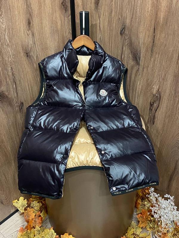 Жилетка в стиле moncler на пухую черная молоко зима осень