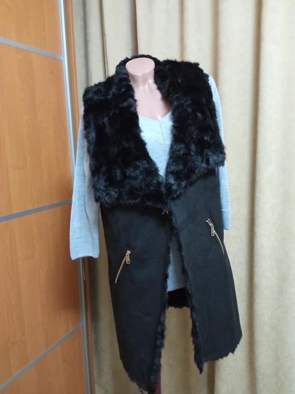 новое! в идеальном состоянии, без нюансов, сток очень напоминает натуральную дубленку с натуральным мехом, хотя искусств енная, производитель указывает размер L, хотя подойдет и на меньший, ориентируйтесь на замеры длина по центру спины 88, плечи 40, грудь на уровне подмышек 52, бедра 53, низ 55 замеры выполнены по спинке от шва до шва, спереди идет в стык с незначительным запахом