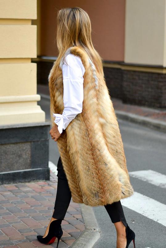 Шикарный жилет из меха лисы. тип кроя - роспуск ёлочка.длина 100 см( может быть любой)размеры - по Вашим индивидуальным параметрам (с 50 размера цена выше)