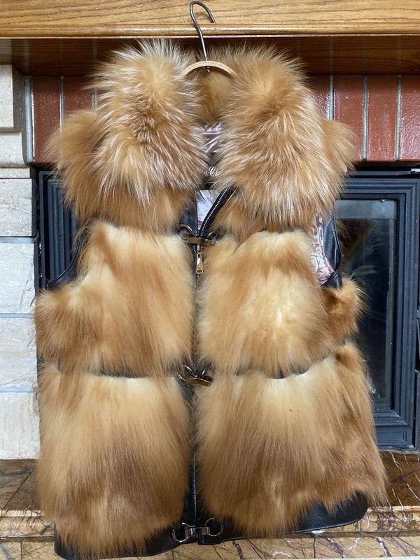 Дизайнерская жилетка кожаная спинка перед из меха лиса