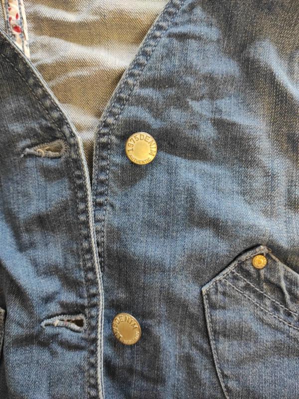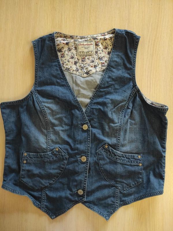 Трендовая джисовая жилетка дополнит ваш образ. ПОГ 53ПОТ 50Длина спереди 52 (по центру)Длина по спинке 42