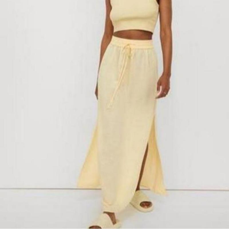 юбка в размере L с разрезами по бокам легкая летняя очень стильнаявсе замеры в личные сообщенияесть маленькое темное пятно в самом низу, можно попробовать отстирать