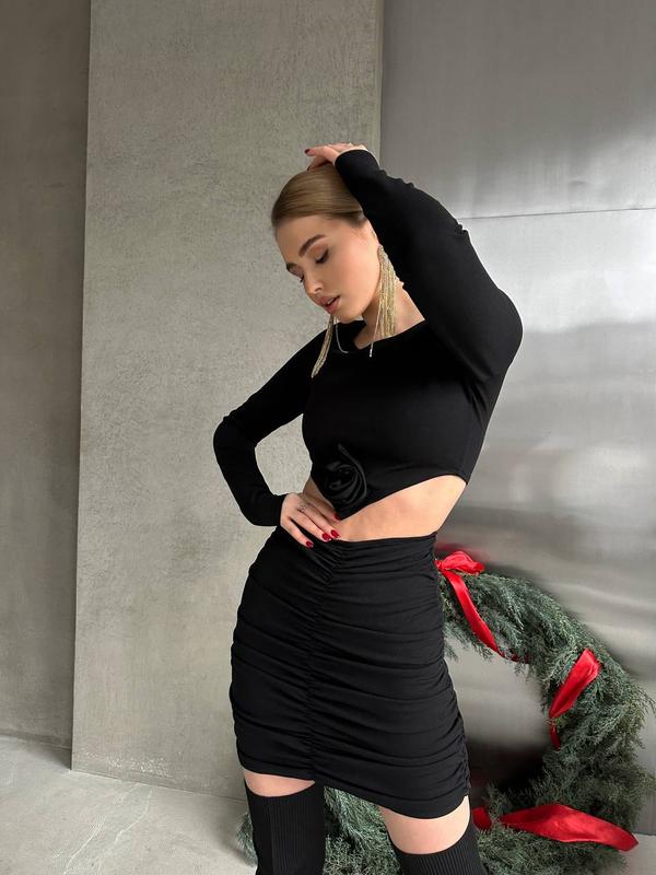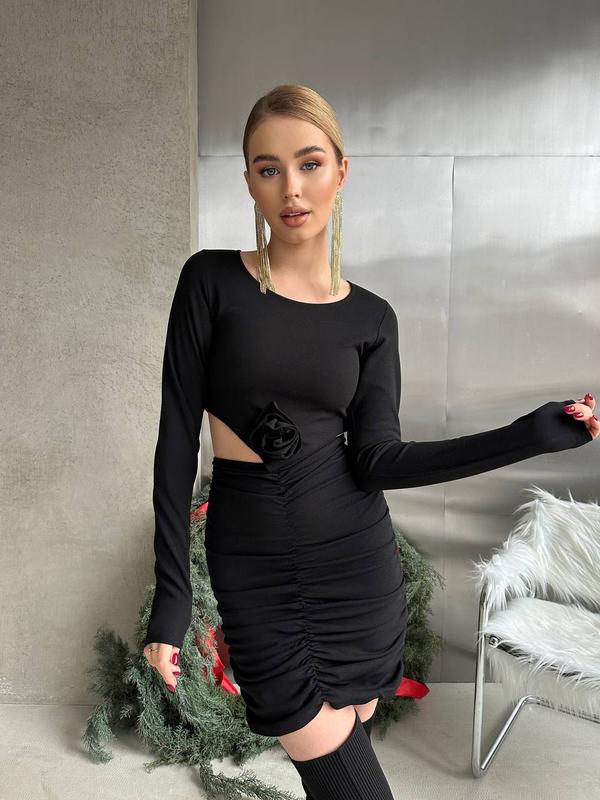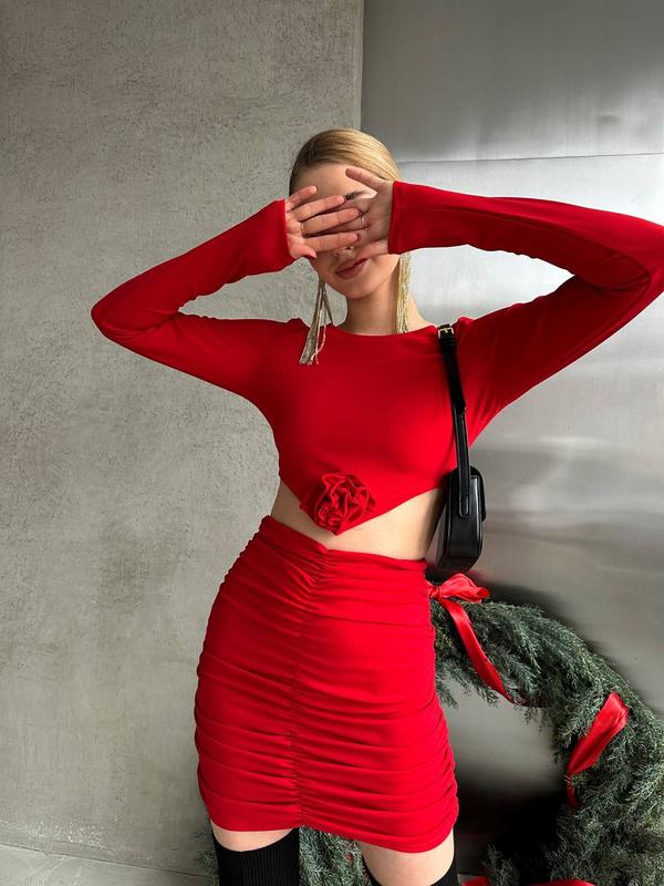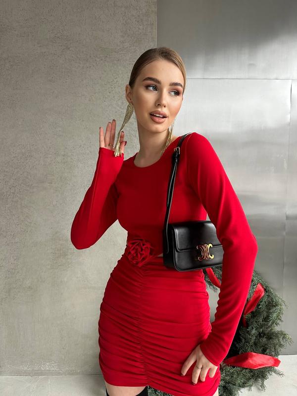 Платье, которое влюбляет с первого взгляда. Идеально моделирует фигуру, за счет плотной ткани, очень стильная и яркая. Роза ручной работы. Можно носить отдельно, или прикреплять их к верху, есть резиночка.