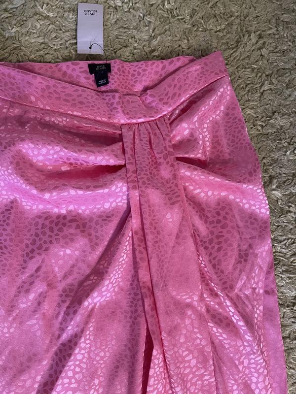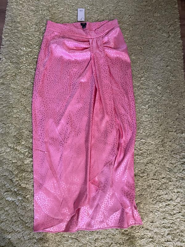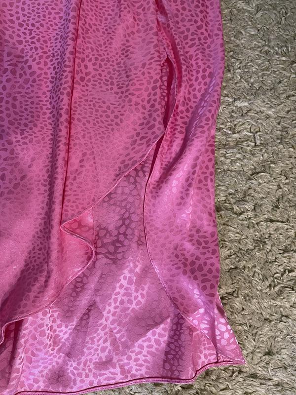 Юбка макси, с разрезом, розовая, сатиновая, лео, шикарная