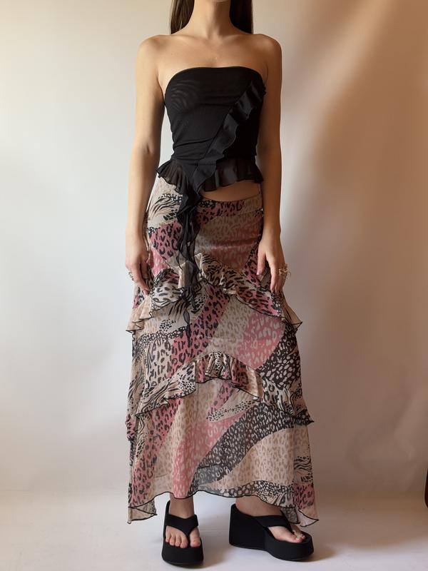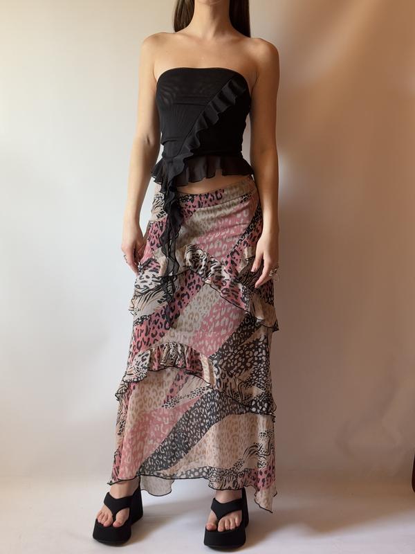 Леопардовая юбка с рюшами Стан замечательный Размер МЕсть подкладка сверху, так что не просвечивает