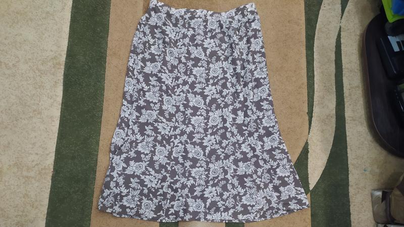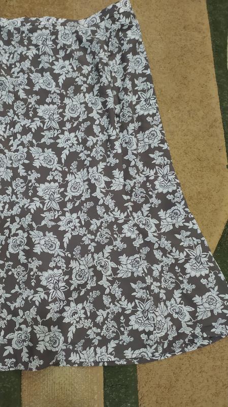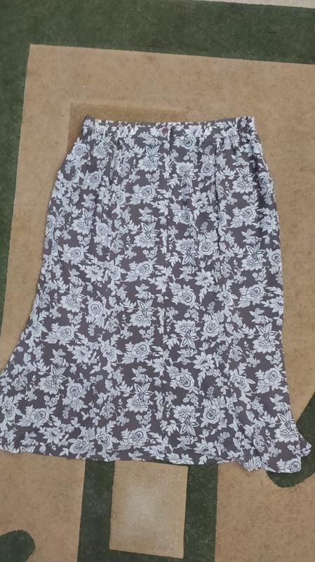 Юбка- миди полуклеш, в бежево-коричневый цветочный принт m&s( размер 14-16)