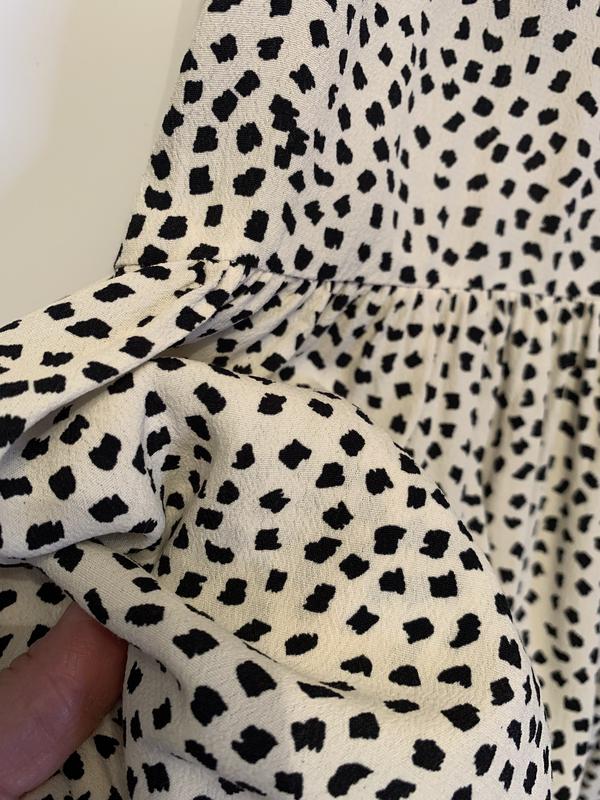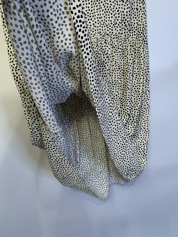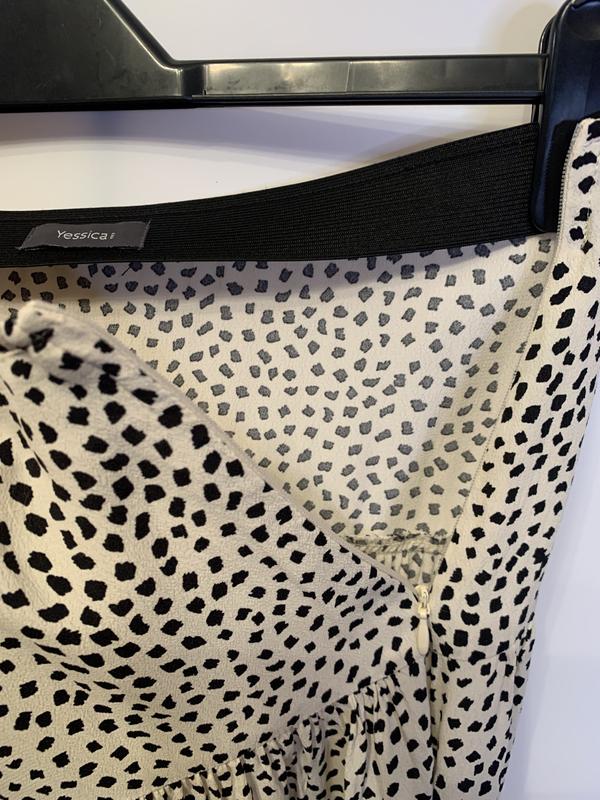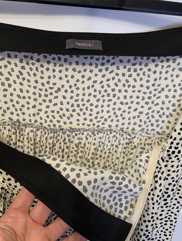 Юбка длины миди выполнена из натурального шелка в принт «листки», пошита из 4-х клинков, застегивается сзади на молнию, оказывает дефект по ткани,показала на последних фото,в носке из-за принта и кроя совсем не видно,але в цене учит,размер указан 10, по сравнению с измерениями👇👇👇