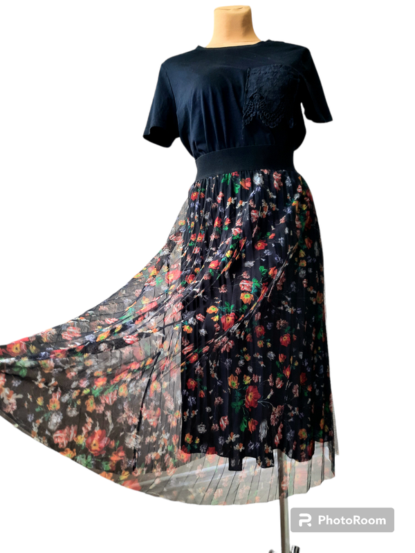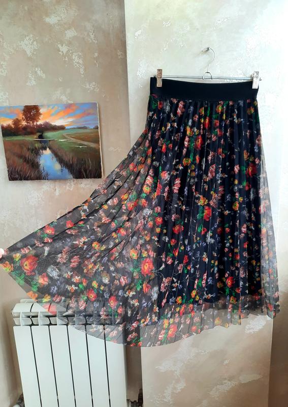 Предлагаю очень женственную юбку плиссе в цветочный принт . Модель на широкой чёрной резинке состоит из двух слоёв первый воздушный шифон и подкладка , длинная до щиколотки. Изделие с коллекции бренда H&M размер по бирки указан EUR 36 .