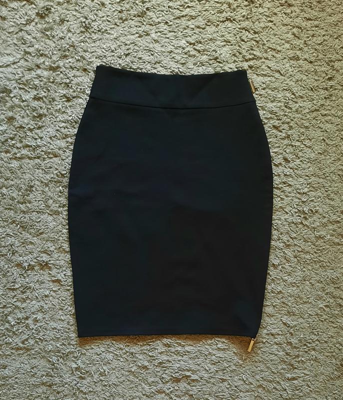 💝2+1=4 брендовая черная юбка карандаш с молниями миди karen millen, размер 44 - 46