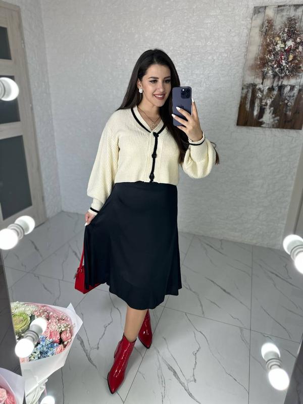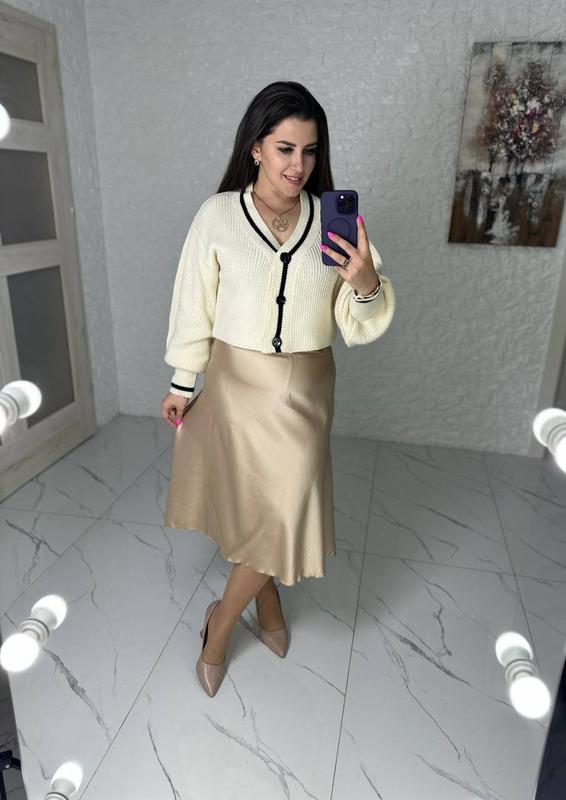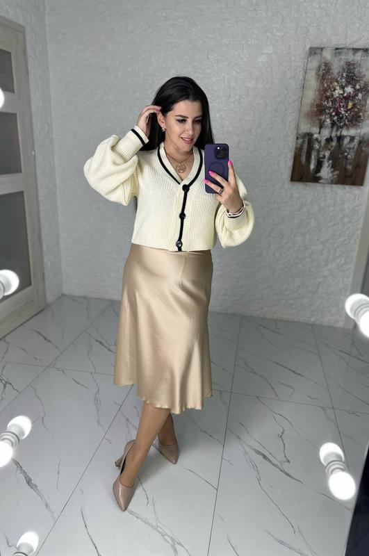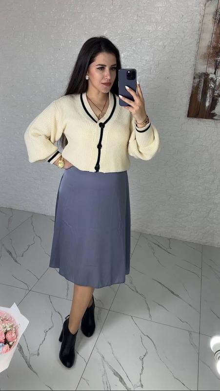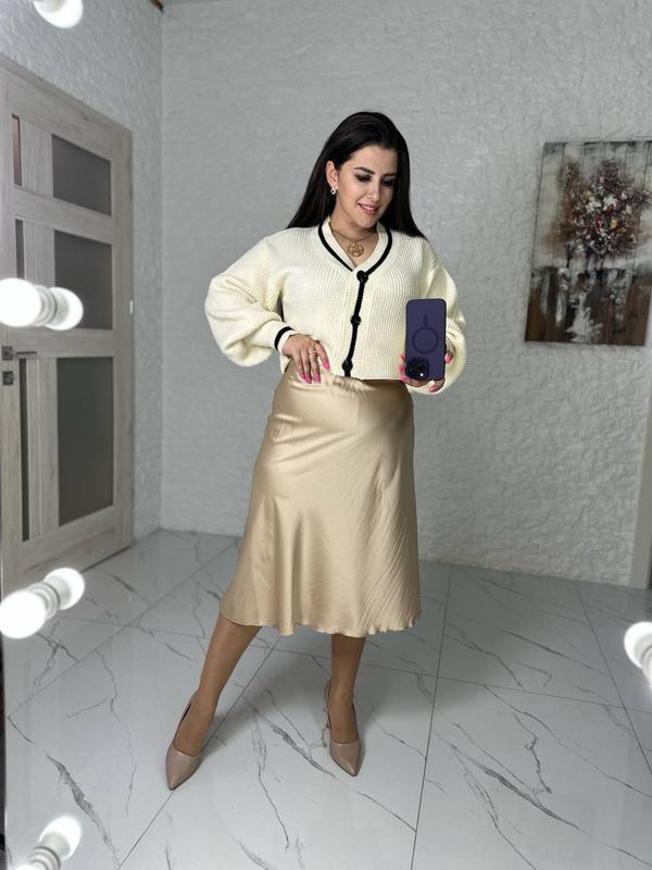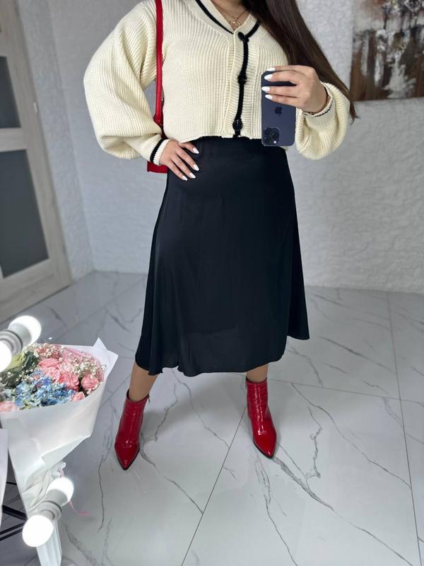 Юбка ниже колен, на широком поясе, к низу шире ( трапецией)