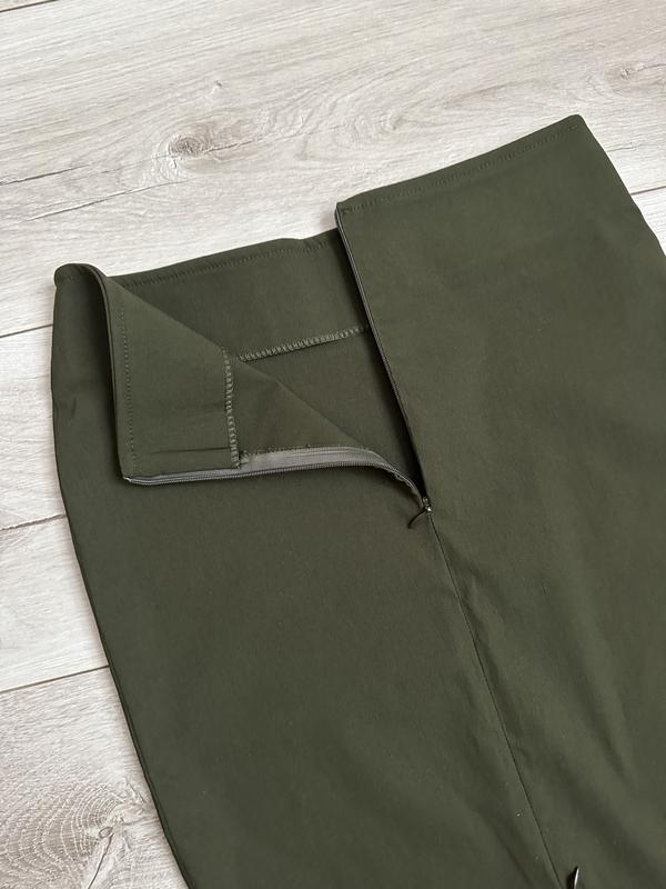 Юбка миди в цвете хаки. Классно тянется, высокая посадка. Снигу есть возможность расширить для комфортной ходьбы (на тайном замочке). Очень красиво подчеркивает фигуру. Французский бренд Morgan De Toi.