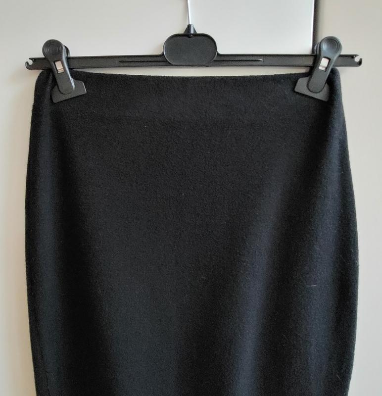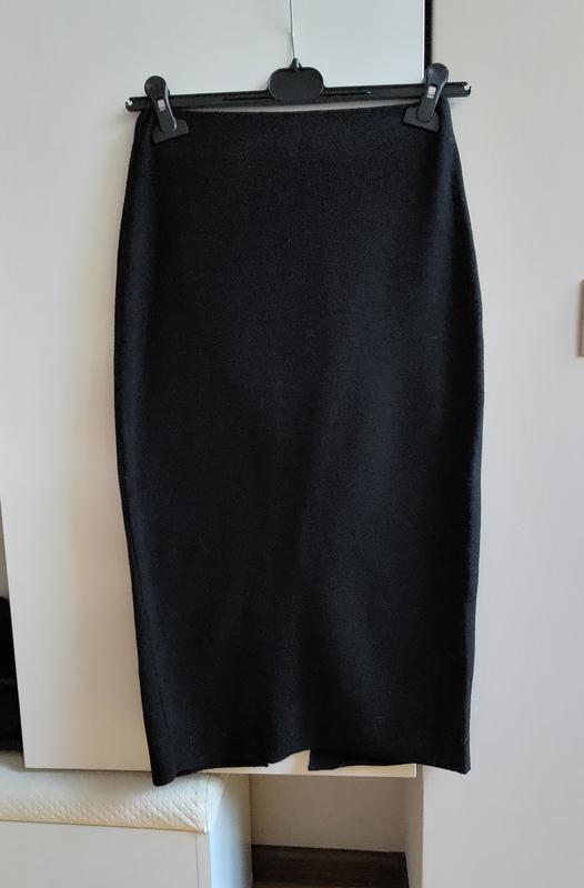 юбка карандаш черная. флисовая, теплая. длина миди. вверху на резинке. сзади разрез. очень хорошо тянется. Goldi.
